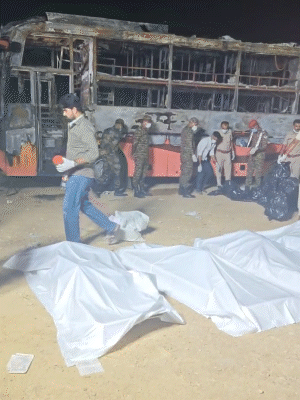 बस में कोई चीख-चिल्लाहट नहीं हो रही थी। बस के गेट पर जाकर देखा तो उसमें लाशों का ढेर था।