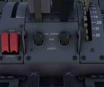 हर इंजन के लिए अलग-अलग फ्यूल कंट्रोल स्विच होता है। उदाहरण के लिए, बोइंग 787 में दो इंजन हैं, तो दो स्विच होंगे- एक बाएं इंजन के लिए, एक दाएं के लिए।