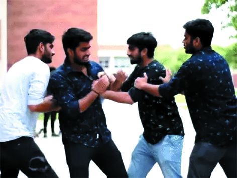 दुकानदार कहता है- ‘सभी भाषाएं’, तो एक कार्यकर्ता उसे थप्पड़ मार देता है। फिर कार्यकर्ता दुकानदार को दो बार थप्पड़ मारता है। दुकानदार कुछ समझाने की कोशिश करता है, लेकिन उसे चार बार और थप्पड़ मारे जाते हैं।