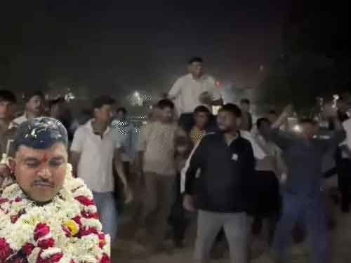 सेलिब्रेशन में कोतवाली थाना इलाके का हिस्ट्रीशीटर बाइक चोर लवकुश शर्मा भी था। उसने टीआई दर्शन लाल शुक्ला को अपने कंधों पर उठा लिया। उन्हें कंधे पर बैठाकर पूरे थाना परिसर में नाचते हुए घुमाता रहा। इसका वीडियो भी सामने आया है।