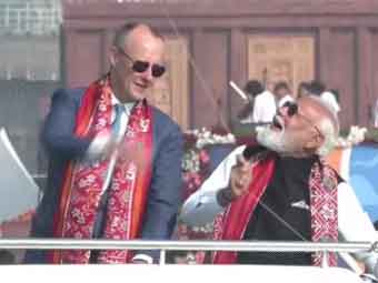 प्रधानमंत्री नरेंद्र मोदी और जर्मन चांसलर फ्रेडरिक मर्ज सोमवार सुबह अहमदाबाद में साबरमती आश्रम पहुंचे। दोनों नेताओं ने यहां महात्मा गांधी को नमन किया। गांधी की मूर्ति पर फूल चढ़ाए और तस्वीर पर सूत (धागा) भी चढ़ाया।