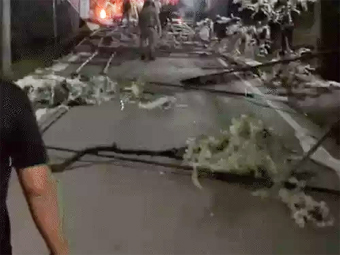 उपद्रवियों ने रास्ते में लगी बैरेकेडिंग तोड़ दी, उनमें आग लगा दी।